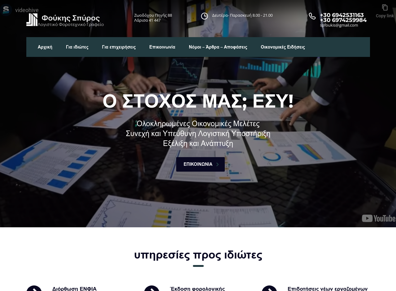 - Δημιουργία και Σχεδιασμός Ιστοσελίδας: Δημιουργήσαμε μια καθαρή και επαγγελματική ιστοσελίδα που παρουσιάζει αναλυτικά τις υπηρεσίες του λογιστή κ.Φούκη, όπως λογιστική διαχείριση, φορολογικές δηλώσεις, οικονομικές συμβουλές για επιχειρήσεις και ιδιώτες. Παράλληλα, οι επισκέπτες μπορούν να βρουν εύκολα πληροφορίες για όλες τις προσφερόμενες υπηρεσίες.